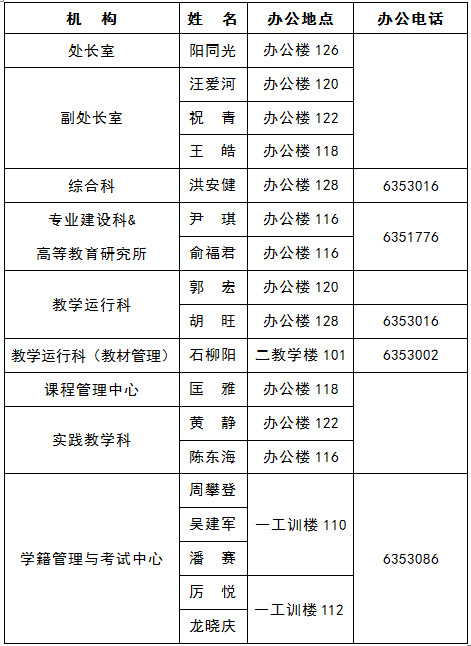 教务处机构设置及信息一览表